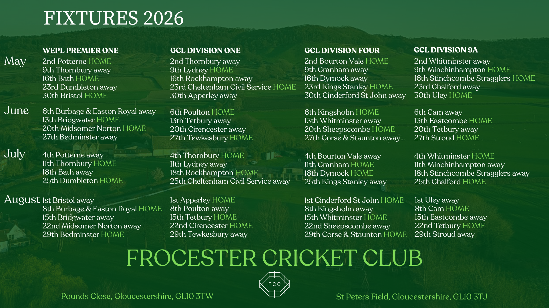 Founded in the mid-19th century, Frocester Cricket Club has always been a village side powered by passion, perseverance and community spirit. From borrowed fields and farmer-kindness to cider-fuelled matches on rough outfields, the club survived wars, waning interest and muddy boots to keep the game alive. Revived time and again by locals—from landowners and blacksmiths to returning servicemen—it steadily built fixtures, facilities and pride. By the 1930s, with a permanent pitch, pavilion and growing support, Frocester cricket had truly put down roots—and the love of the game has endured ever since.