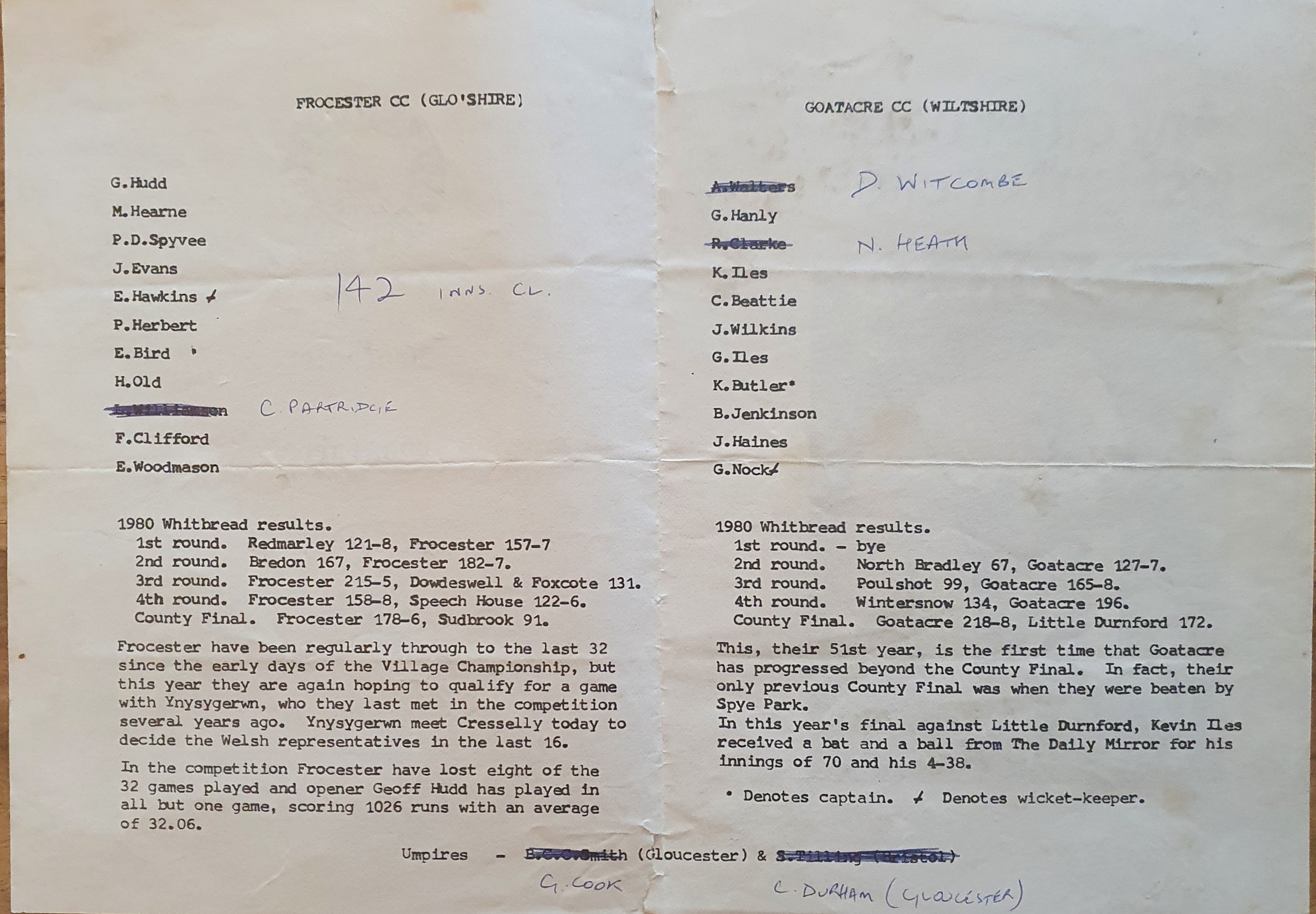 Frocester v Goatacre VKO 13th July